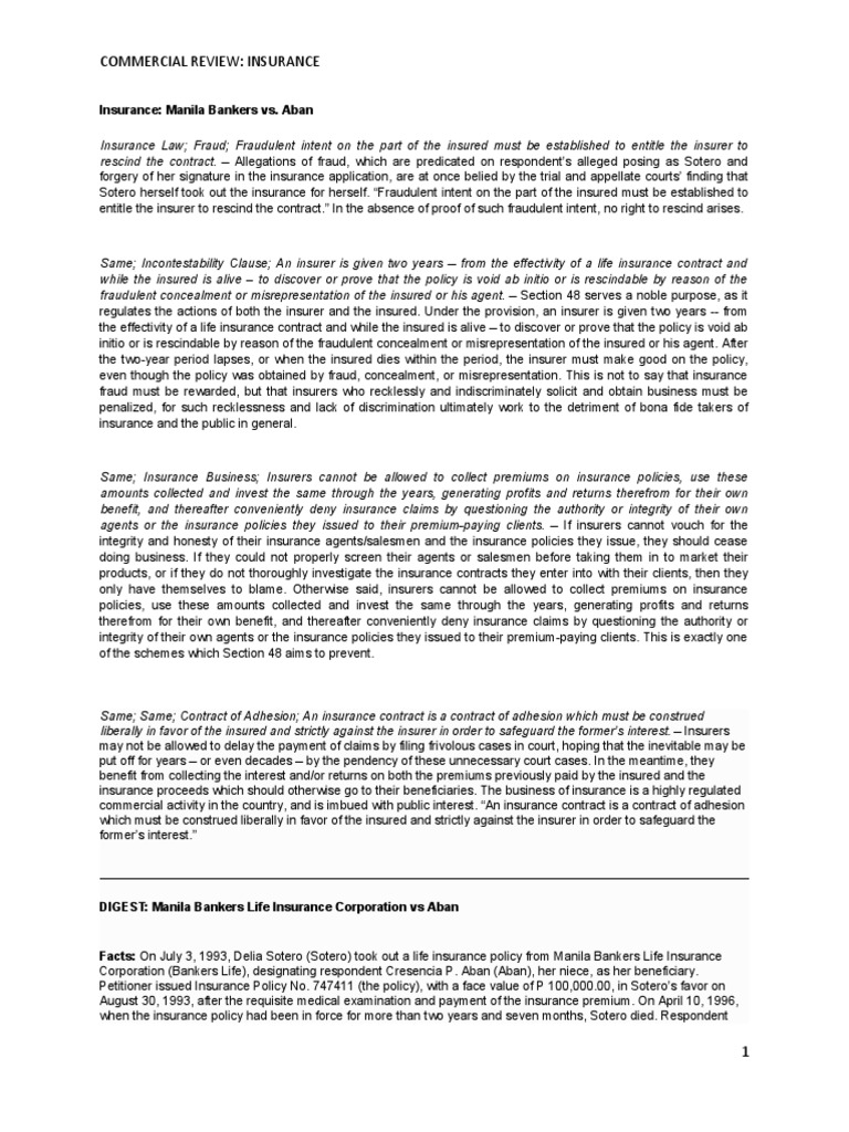 DIGEST: Manila Bankers Life Insurance Corporation vs Aban