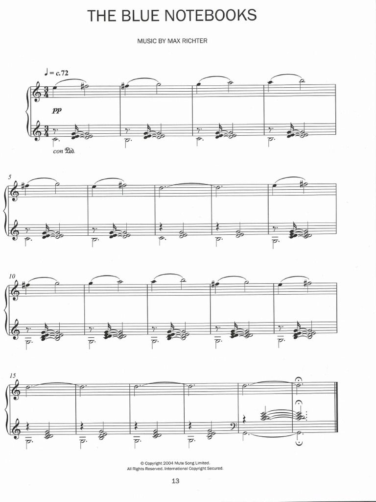 The Blue Notebooks: Contains sheet music for 'The Blue Notebooks', composed by Max Richter.