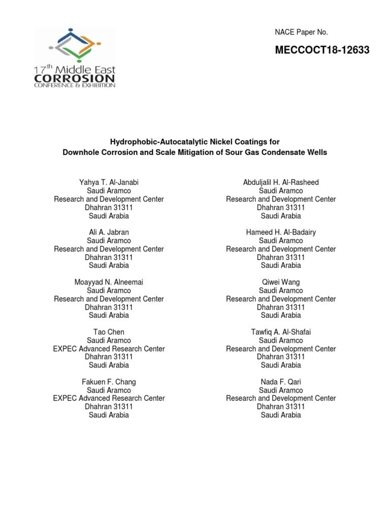 downhole casings and tubing against both corrosion and scaling in sour gas wells. Nine (9) nickel-based