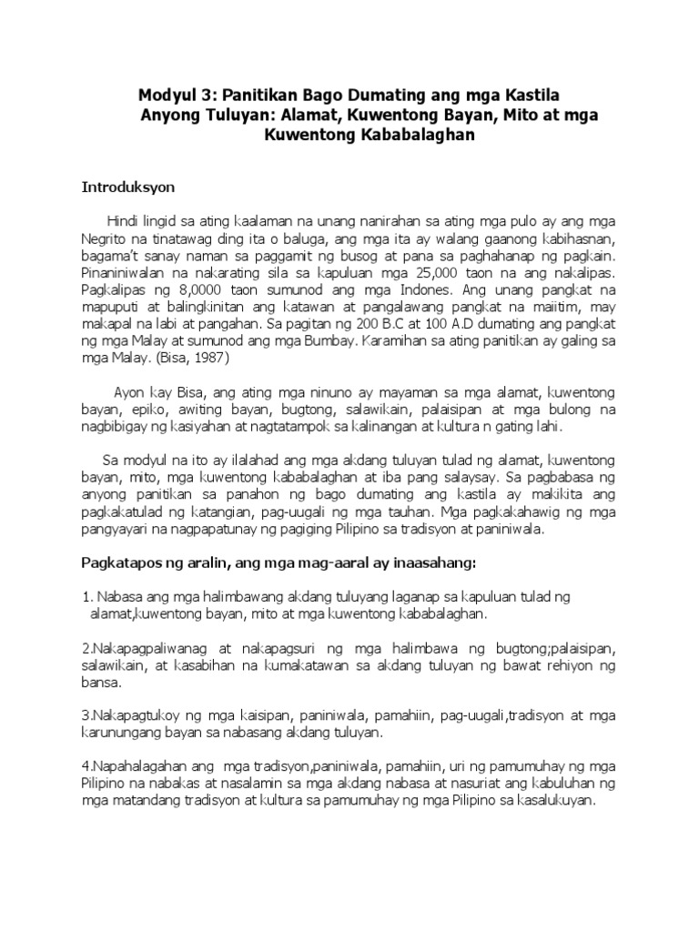 Modyul 3: Panitikan Bago Dumating ang mga Kastila