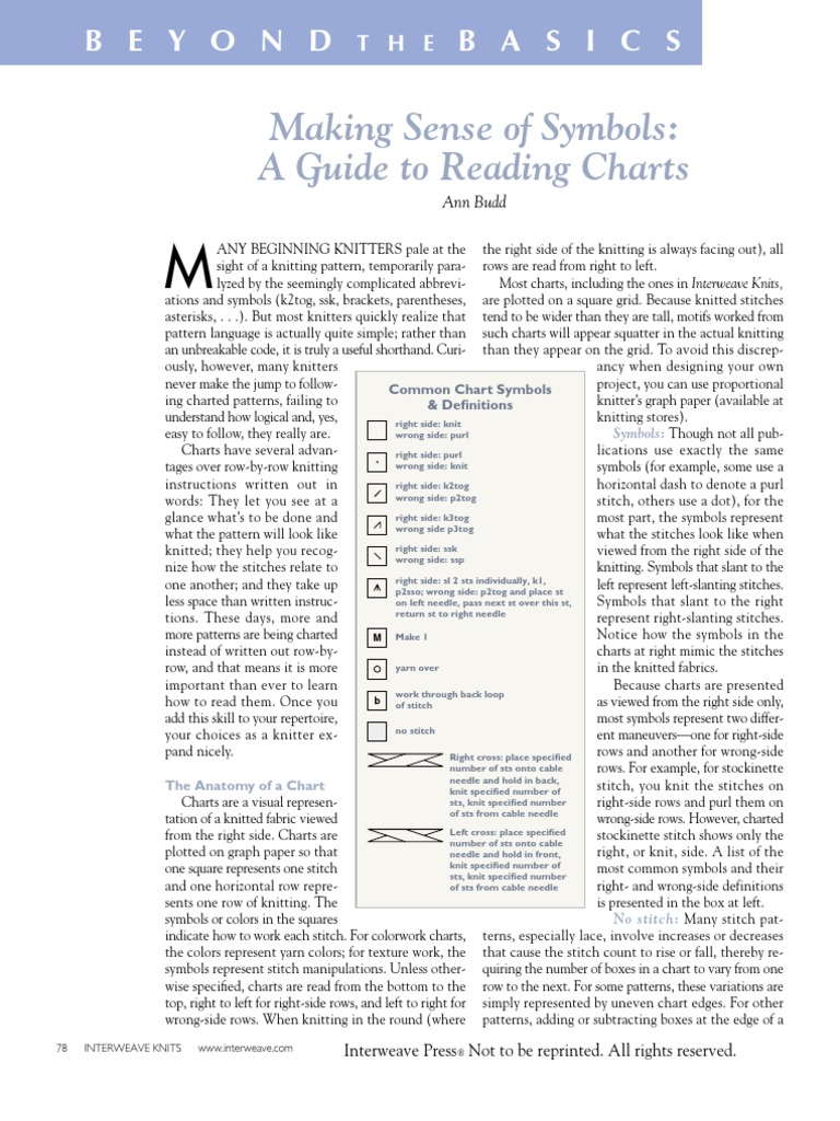 lyzed by the seemingly complicated abbrevi- Most charts, including the ones in Interweave Knits,