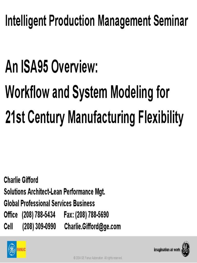 An ISA95 Overview: Workflow and System Modeling For 21st Century Manufacturing Flexibility