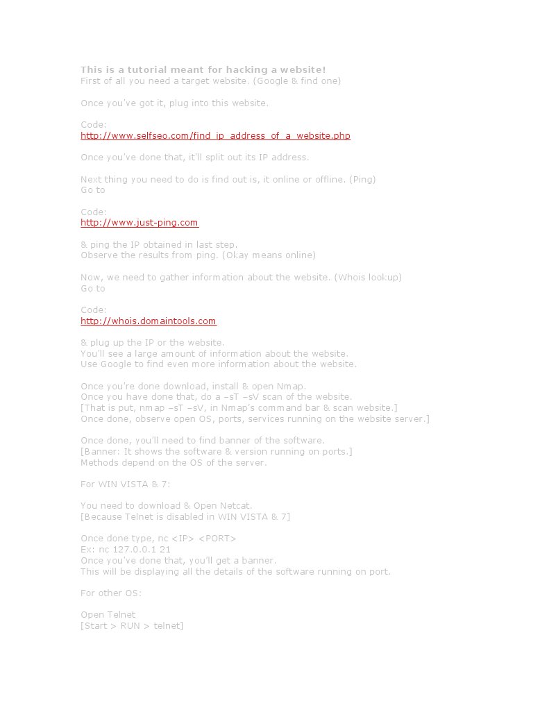 This is a tutorial meant for hacking a website!