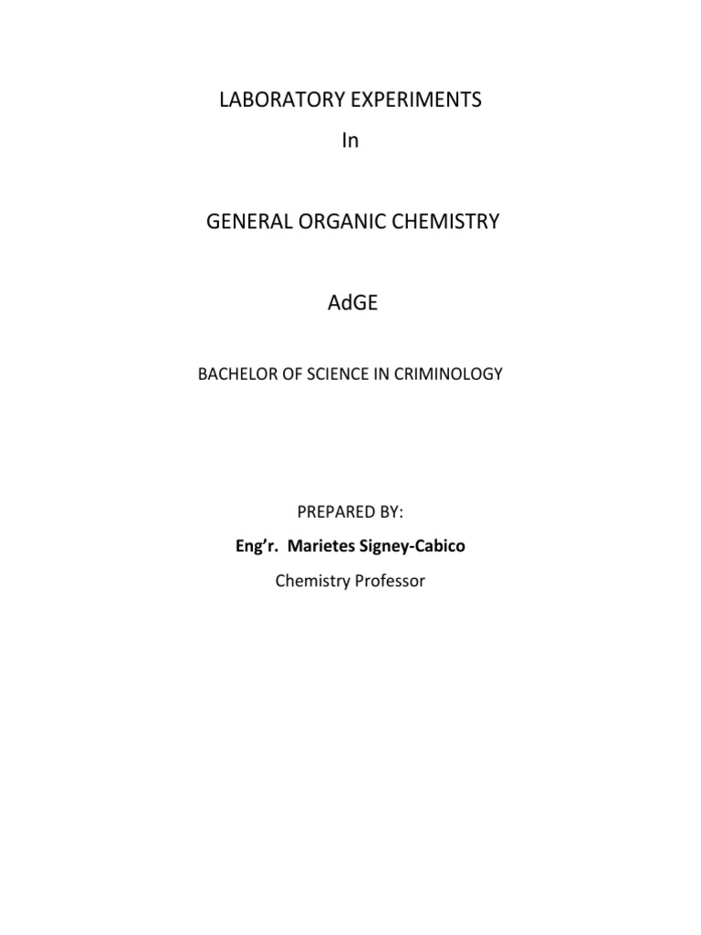 Objectives: To be familiarized with the different classifications of hydrocarbons.