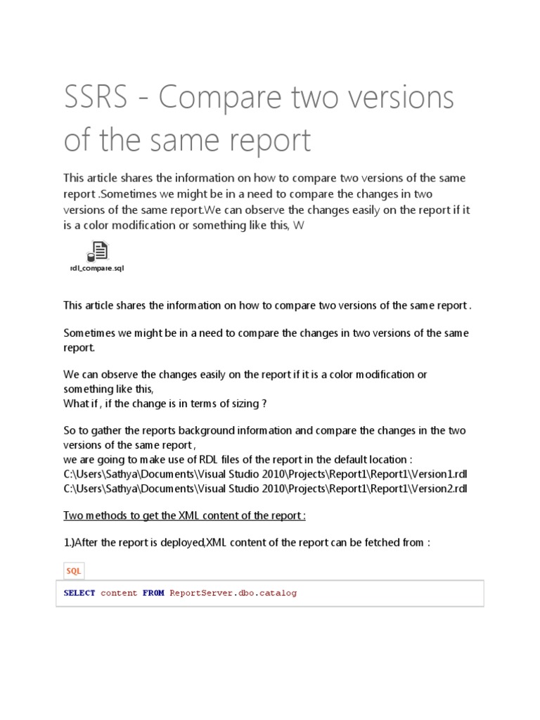 This article shares the information on how to compare two versions of the same report .