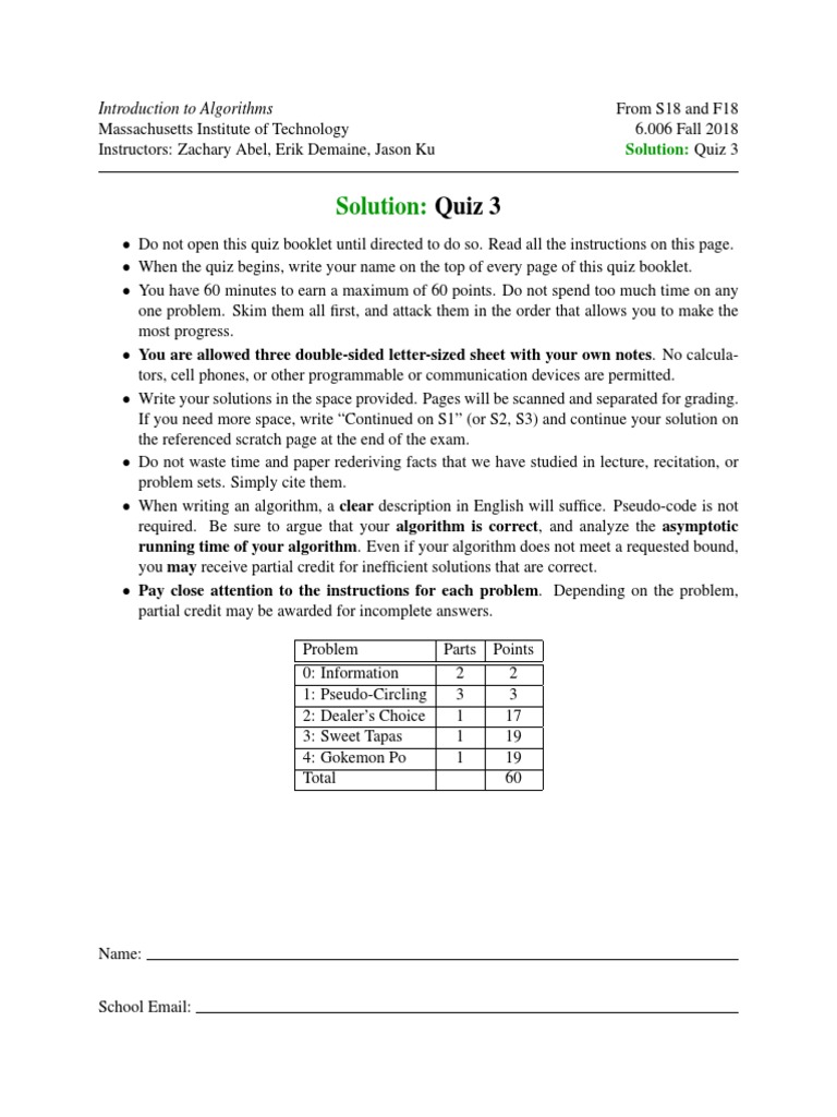 Instructors: Zachary Abel, Erik Demaine, Jason Ku Solution: Quiz 3