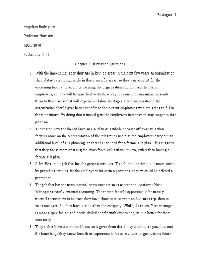 1. With the impending labor shortage in key job areas in the next few years an organization