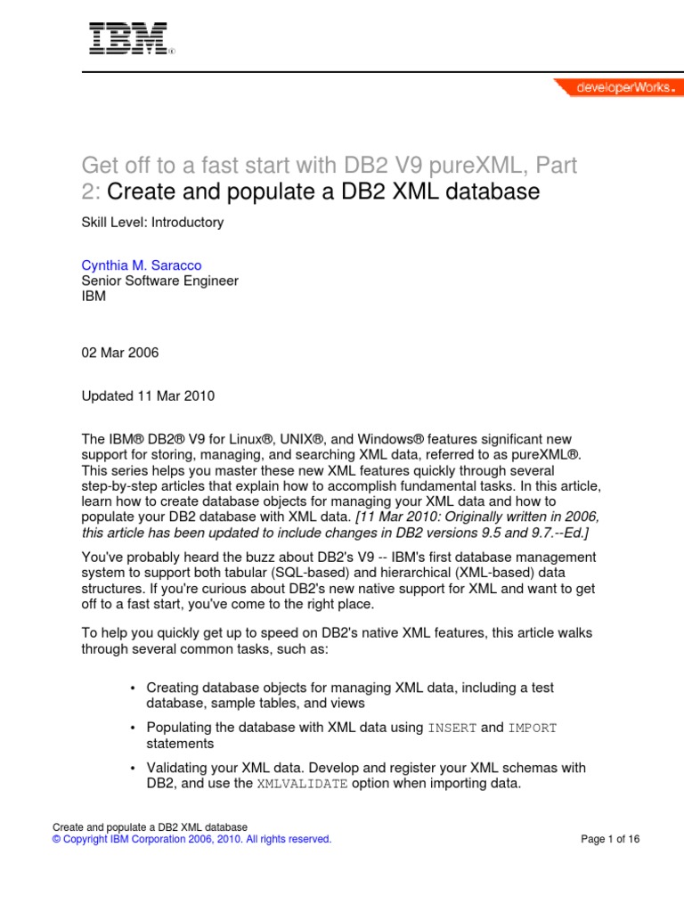 populate your DB2 database with XML data. [11 Mar 2010: Originally written in 2006,