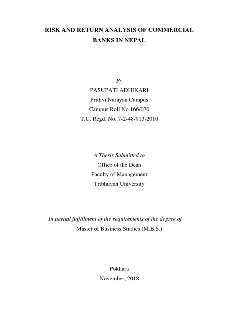 RISK AND RETURN ANALYSIS OF COMMERCIAL BANKS