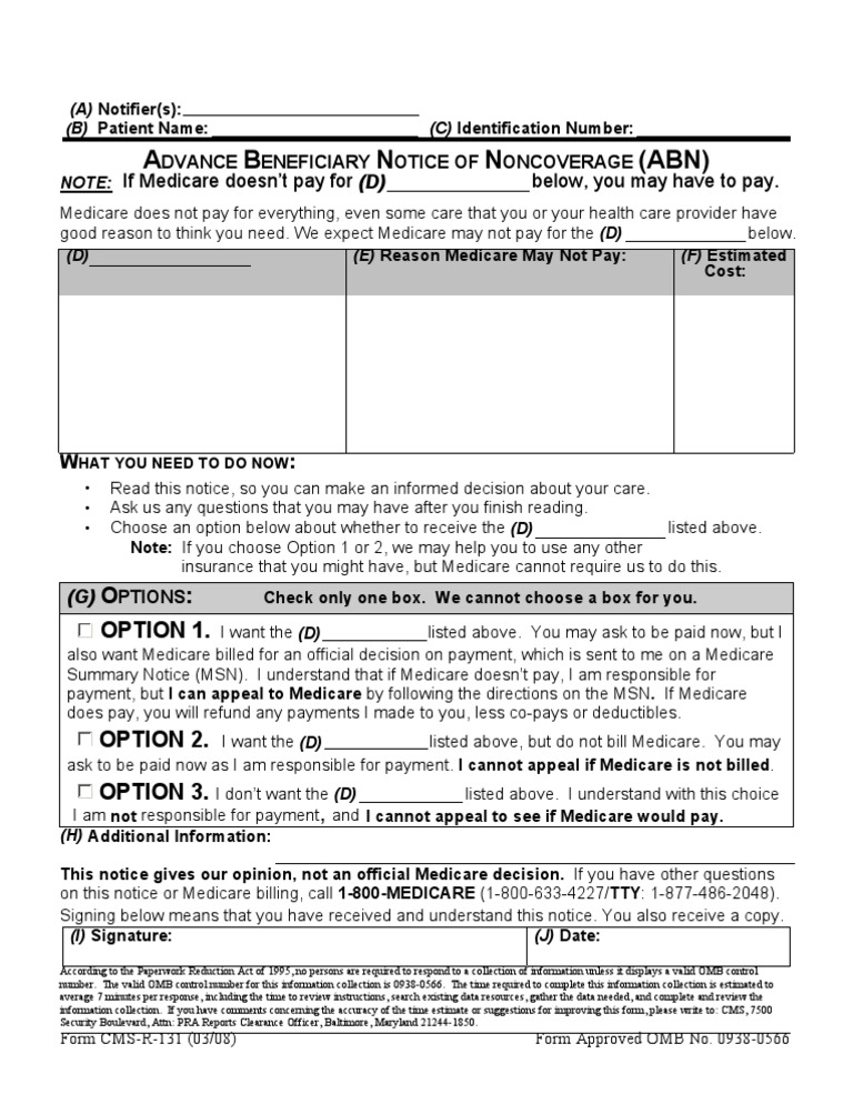 ADVANCE BENEFICIARY NOTICE OF NONCOVERAGE (ABN)