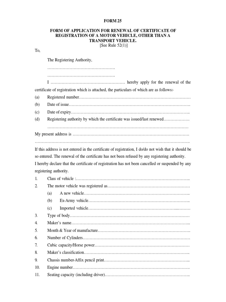 FORM OF APPLICATION FOR RENEWAL OF CERTIFICATE OF
