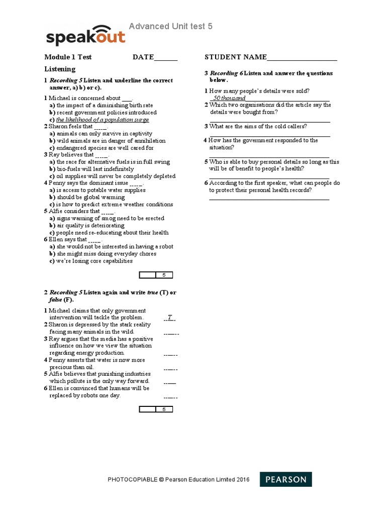 1 Recording 5 Listen and underline the correct below.