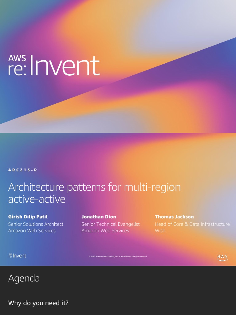 REPEAT 2 Architecture Patterns For Multi-Region Active-Active ARC213-R2