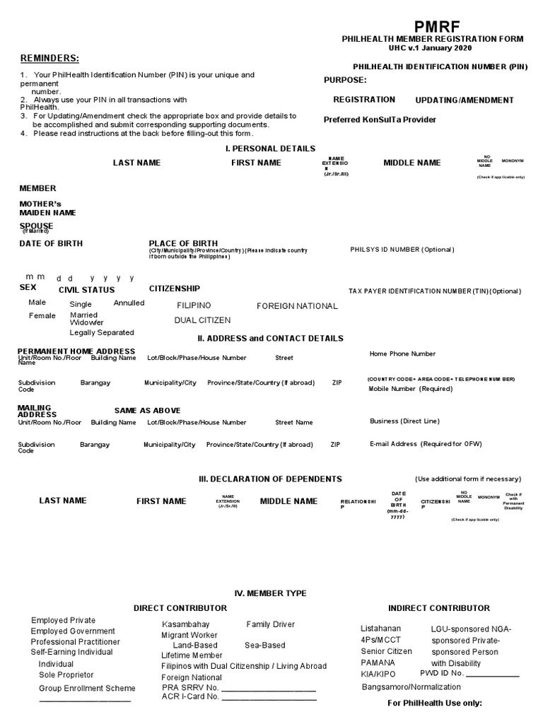 PHILHEALTH MEMBER REGISTRATION FORM