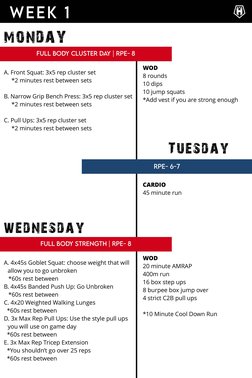 Cycle 1: Week 1: Begins the training cycle with the first week focusing on full body exercises and routines.