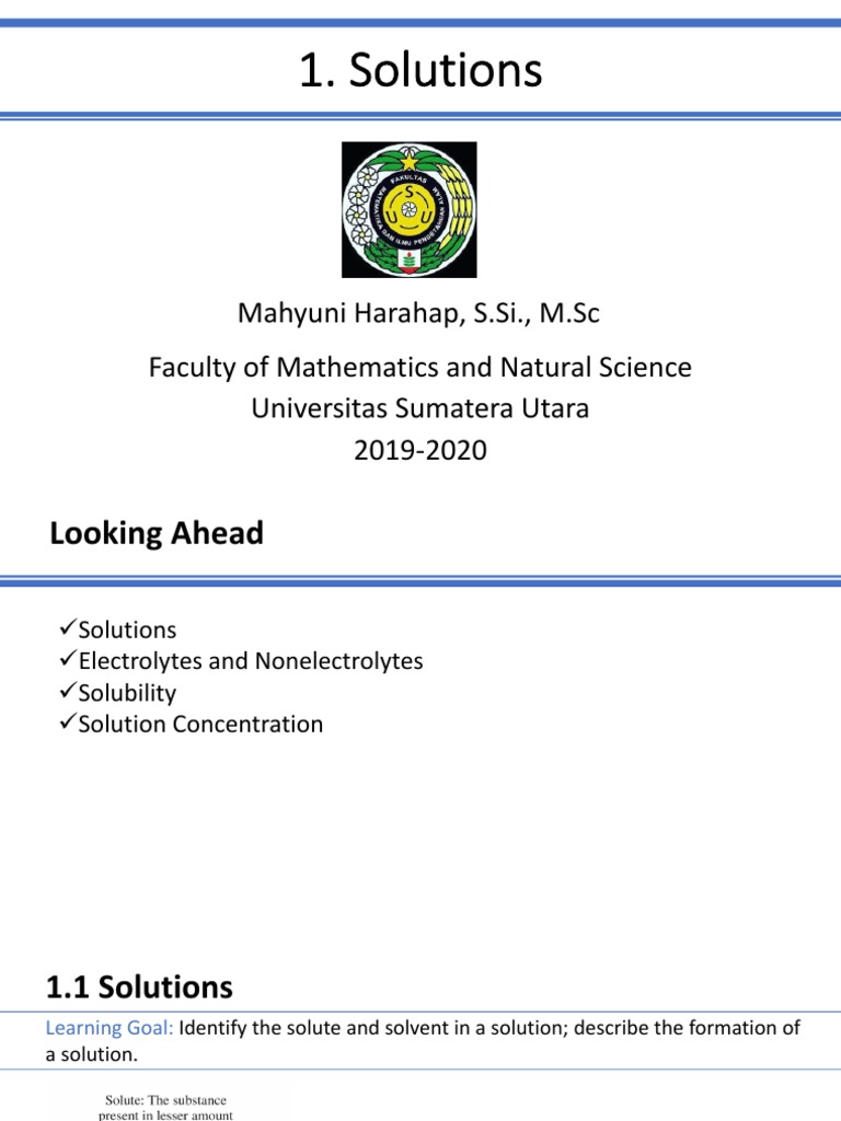 Learning Goal: Identify the solute and solvent in a solution; describe the formation of
