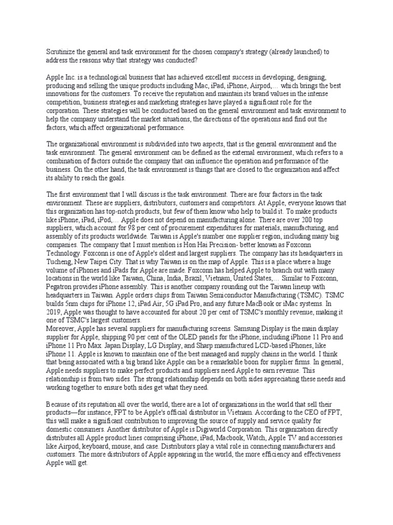 environment. These are suppliers, distributors, customers and competitors. At Apple, everyone knows that