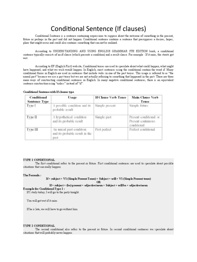 sentence typically consists of an if-clause (which presents a condition) and a result clause. For example : If it rains, the streets get