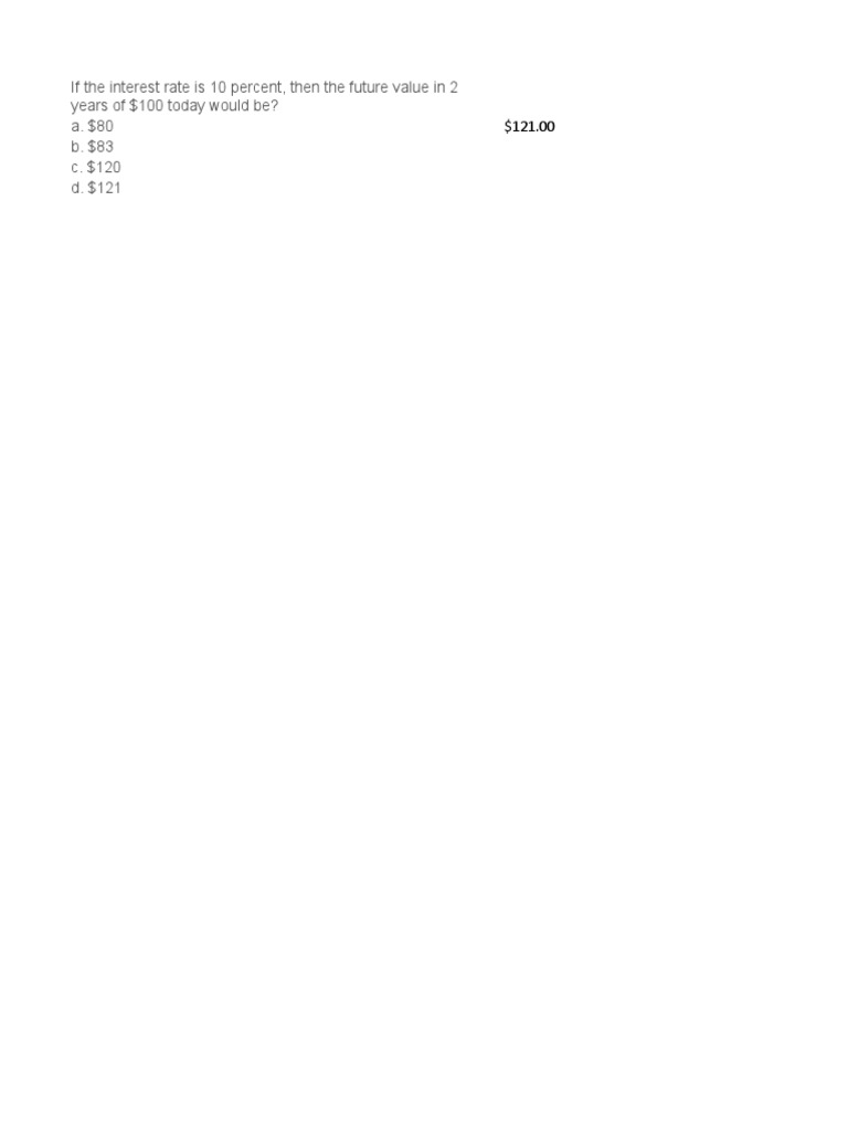 If the interest rate is 10 percent, then the future value in 2