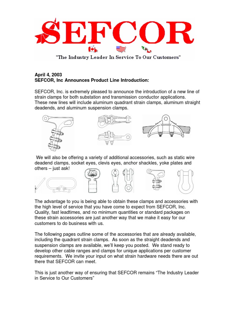 strain clamps for both substation and transmission conductor applications.