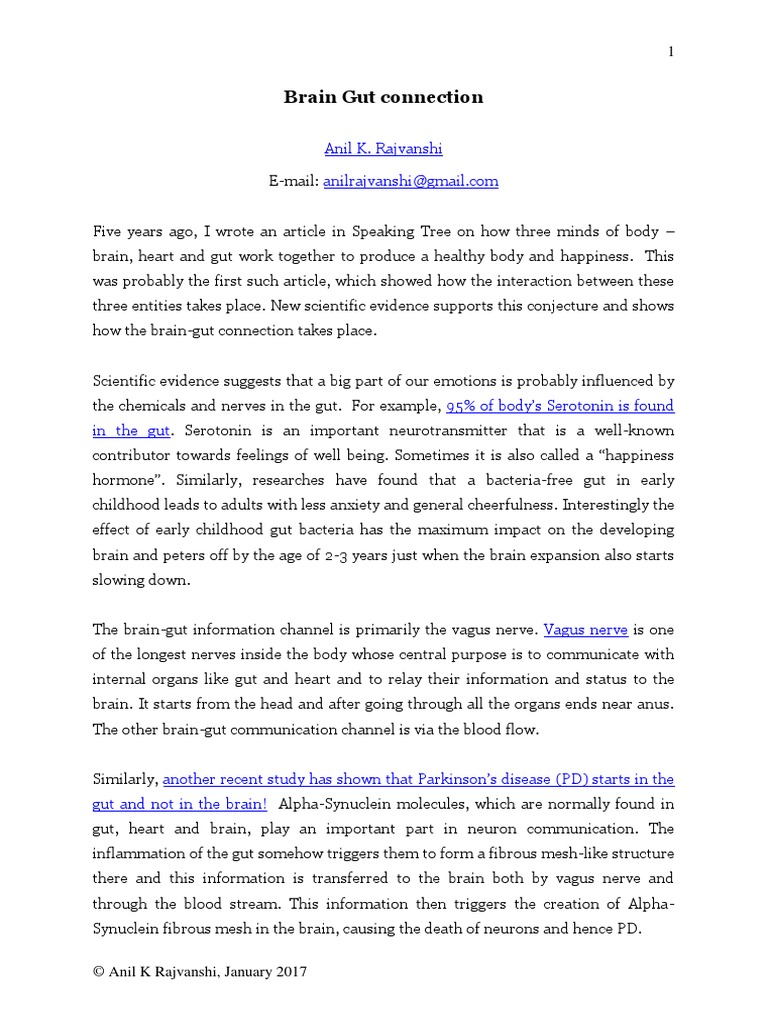 brain, heart and gut work together to produce a healthy body and happiness. This