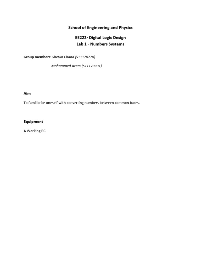 the individuals in converting a number from one number system to another. The lab handout