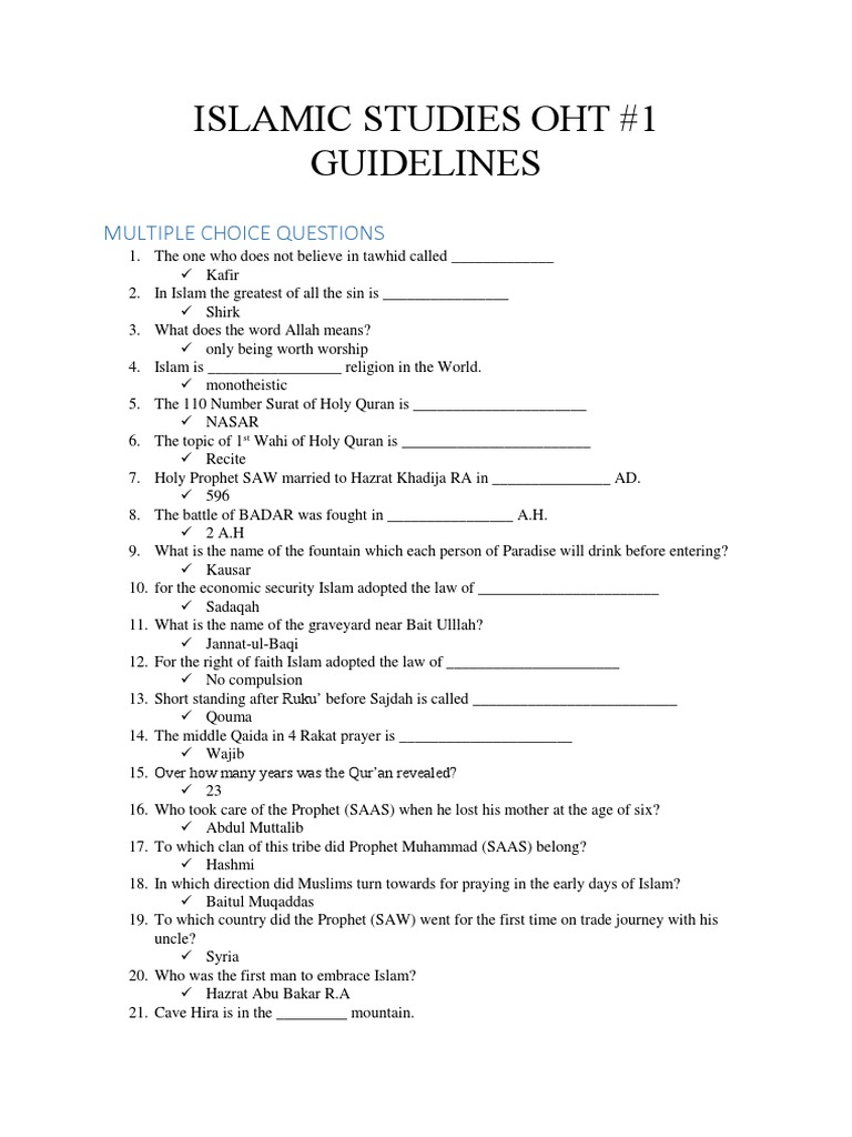 ISLAMIC STUDIES OHT #1