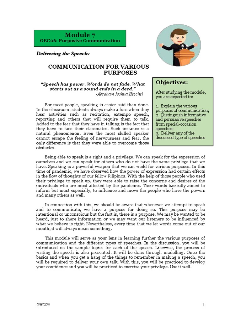 to deliver. Write your own speech to be delivered. You may quote if you wish to but