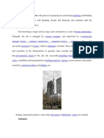 starts with planning, design, and financing and continues until the structure is ready for occupancy.
