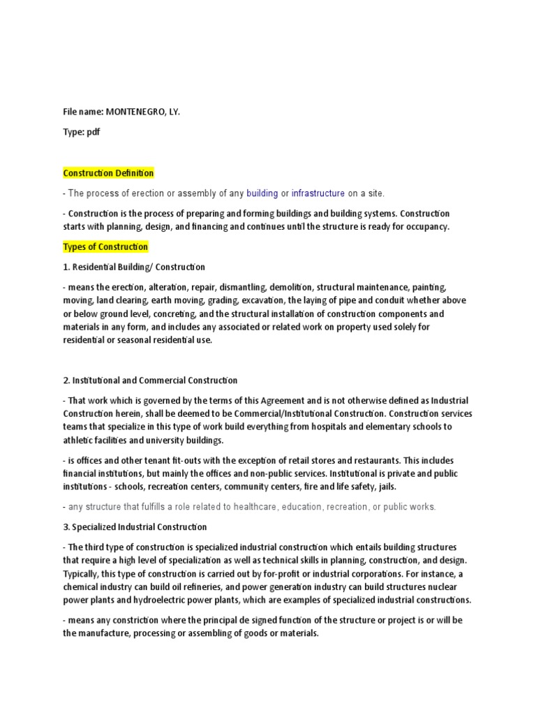 Construction herein, shall be deemed to be Commercial/Institutional Construction. Construction services