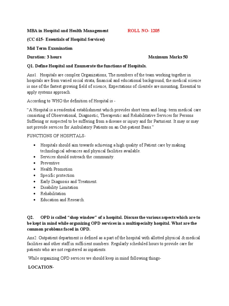 MBA in Hospital and Health Management ROLL NO- 1205