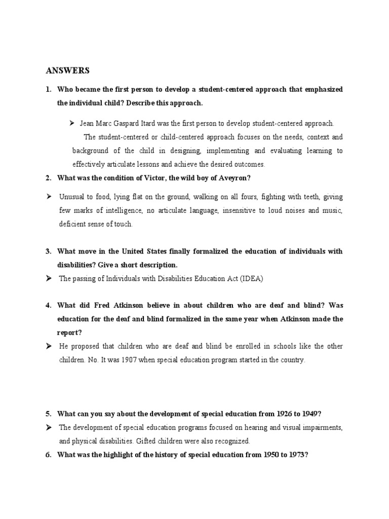 children. No. It was 1907 when special education program started in the country.