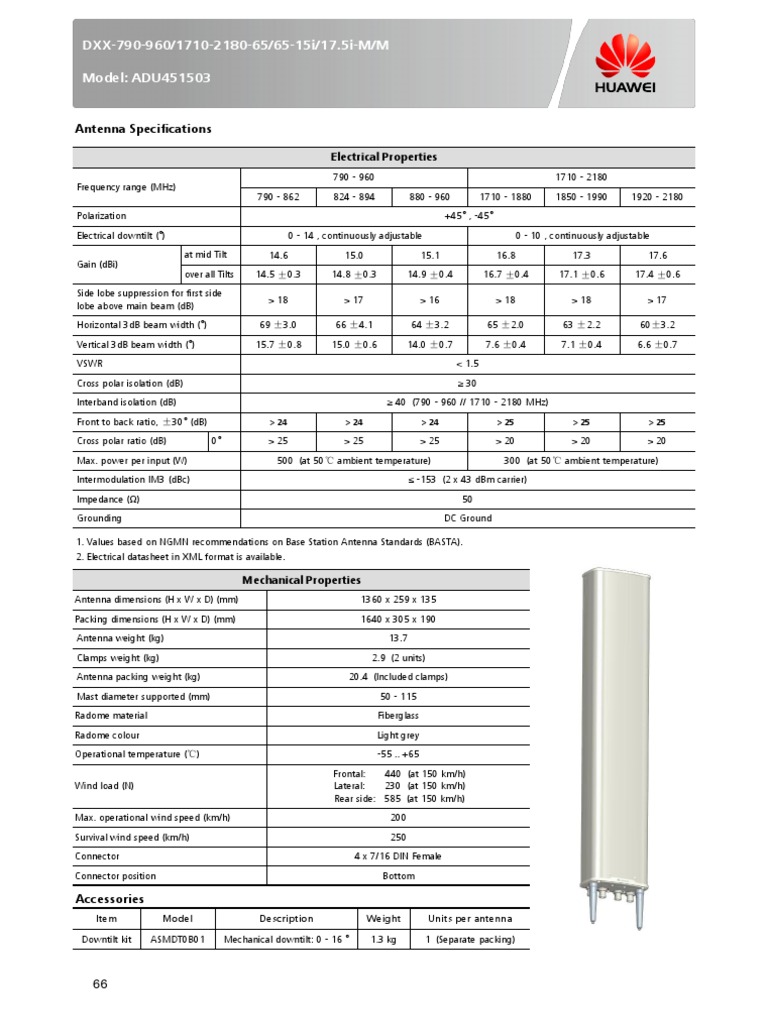 Antenna dimensions (H x W x D) (mm) 1360 x 259 x 135