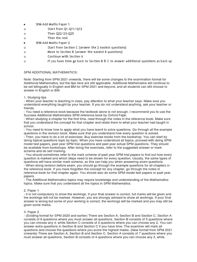 Additional Mathematics, but the tips here are still applicable. Additional Mathematics will continue to