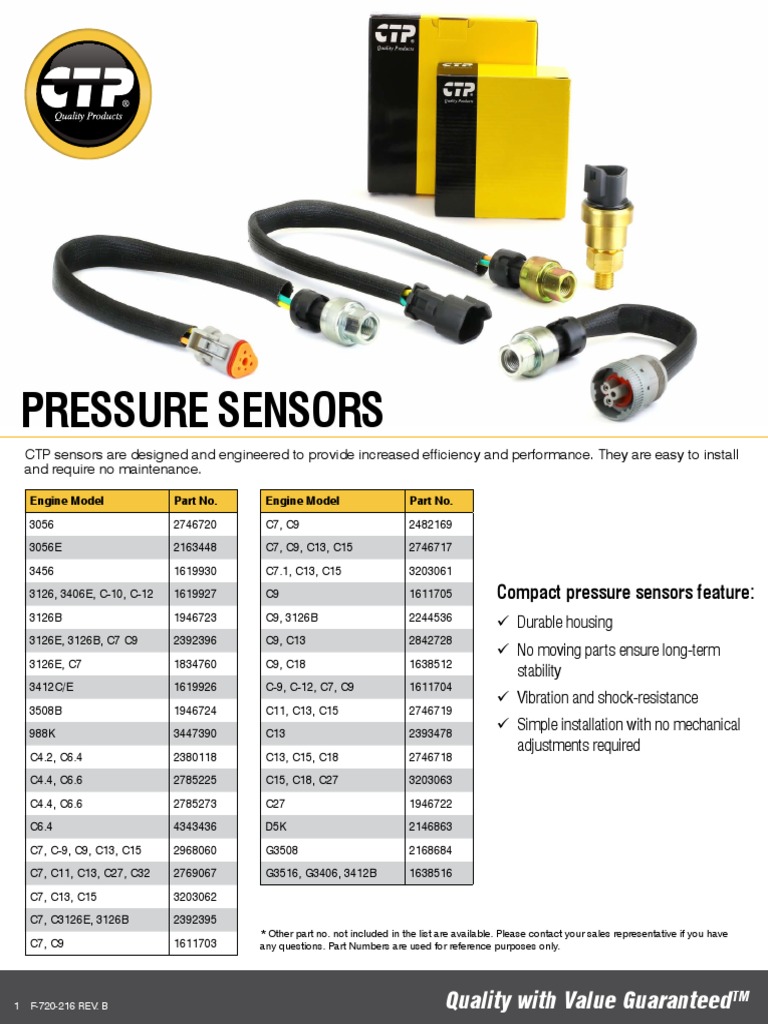 3126, 3406E, C-10, C-12 1619927 C9 1611705 Compact pressure sensors feature: