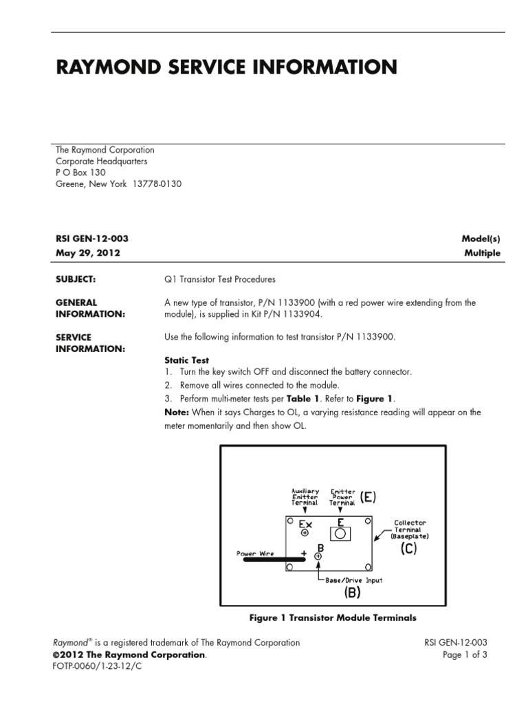 ©2012 The Raymond Corporation. Page 1 of 3