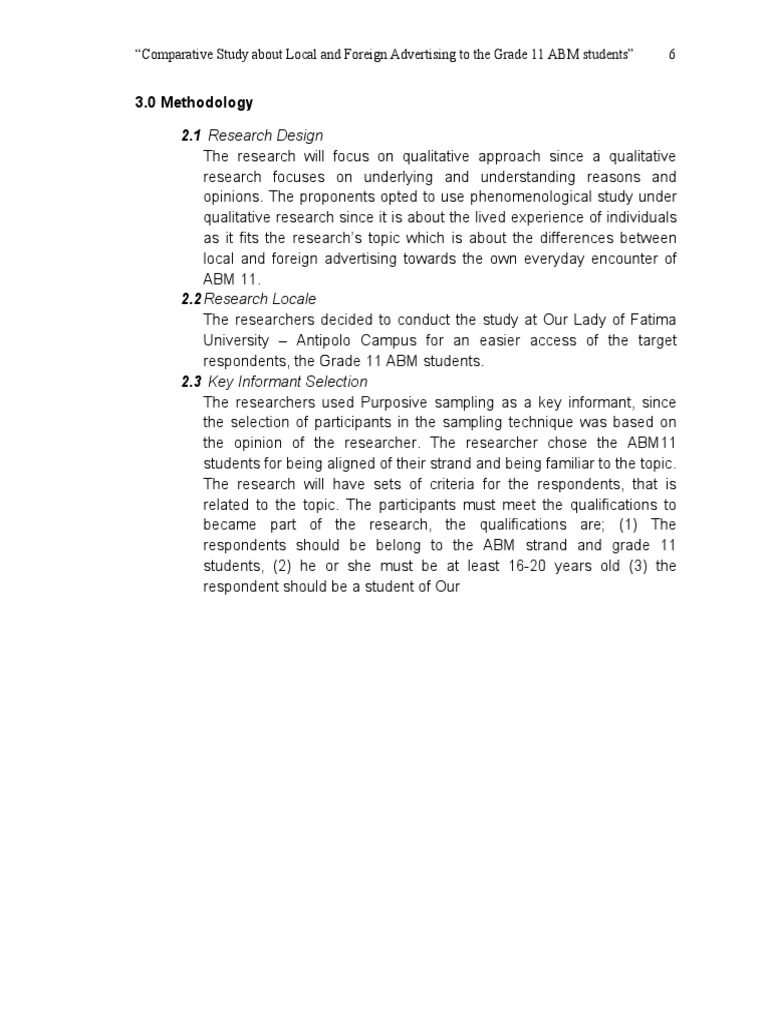 “Comparative Study about Local and Foreign Advertising to the Grade 11 ABM students” 6