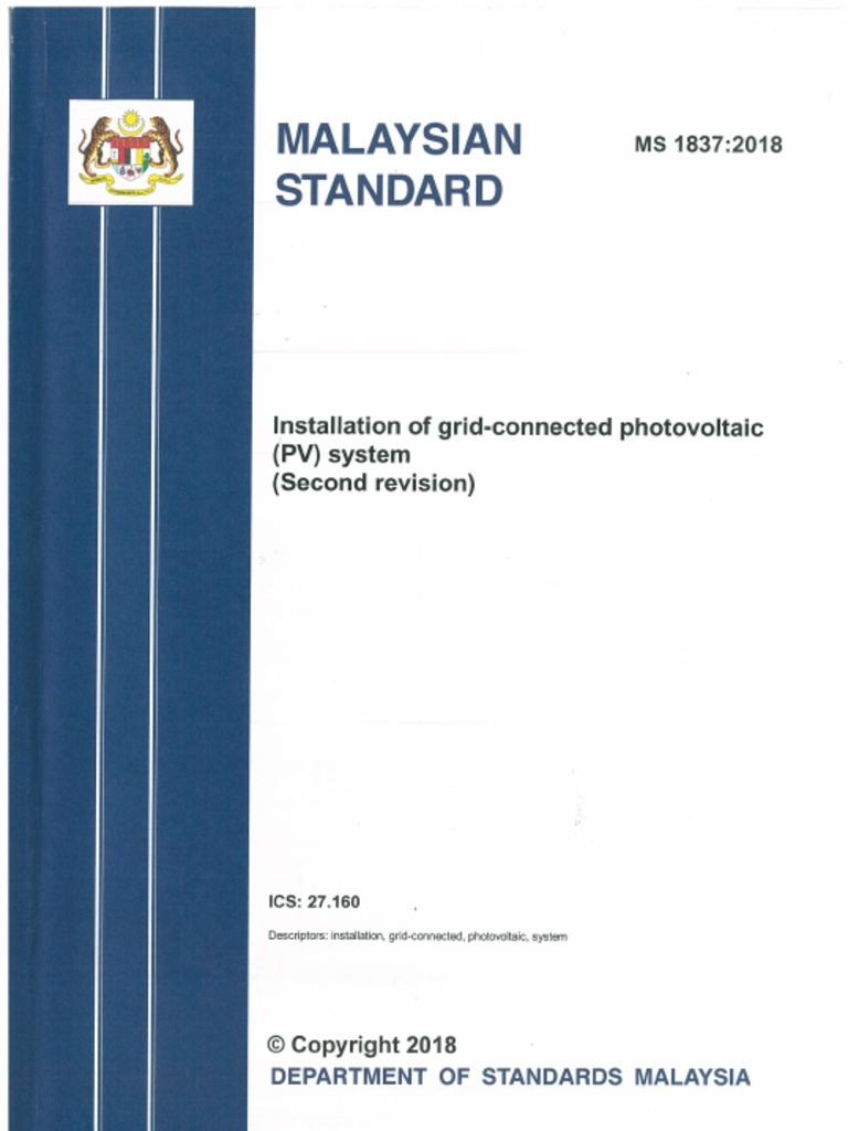 MS IEC 61727, Potovlta (PV) systems - Charactoritics of he uty interface