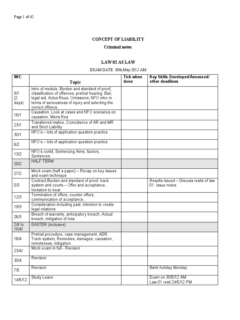 (2 legal aid, Actus Reus, Omissions, NFO intro in