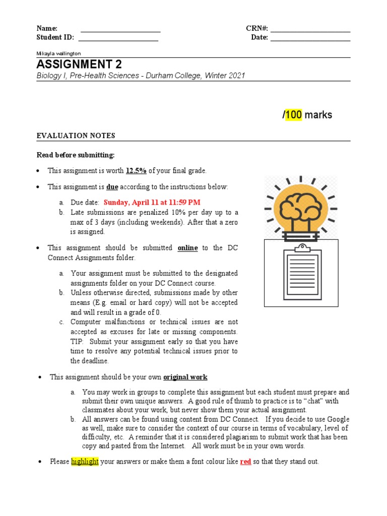 Biology I Assignment 2 Guidelines