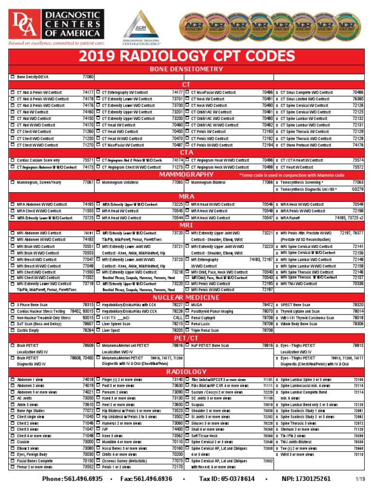 2019 RADIOLOGY CPT CODES