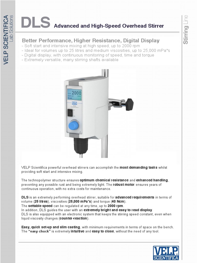 DLS is also equipped with an electronic system that keeps the stirring speed constant, even when