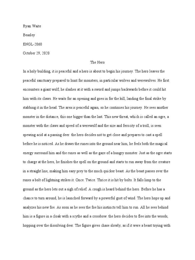 him. Just as he makes it out of the woods into a field of grass and flowers, the figure hits the hero