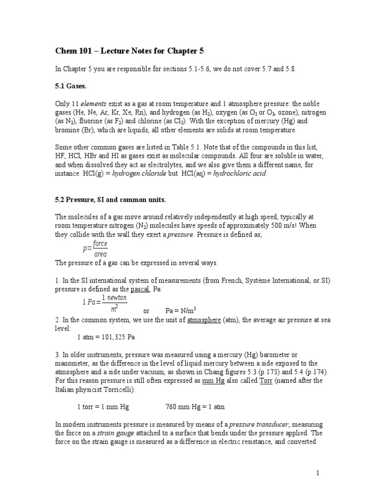 Chem 101 – Lecture Notes for Chapter 5