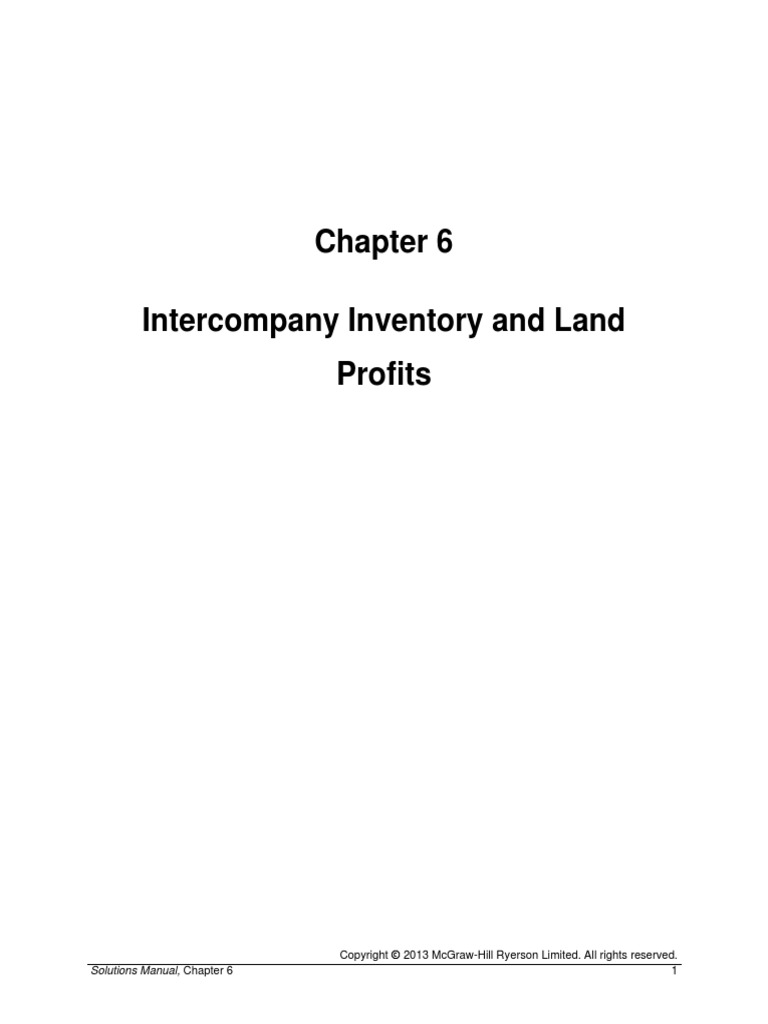Intercompany Inventory and Land Profits: Solutions Manual, Chapter 6