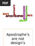 The apostrophe has three uses: 1) to form possessive nouns; 2) to show the omission of