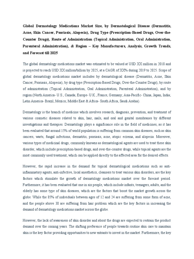demand of dermatology medications market across the globe.
