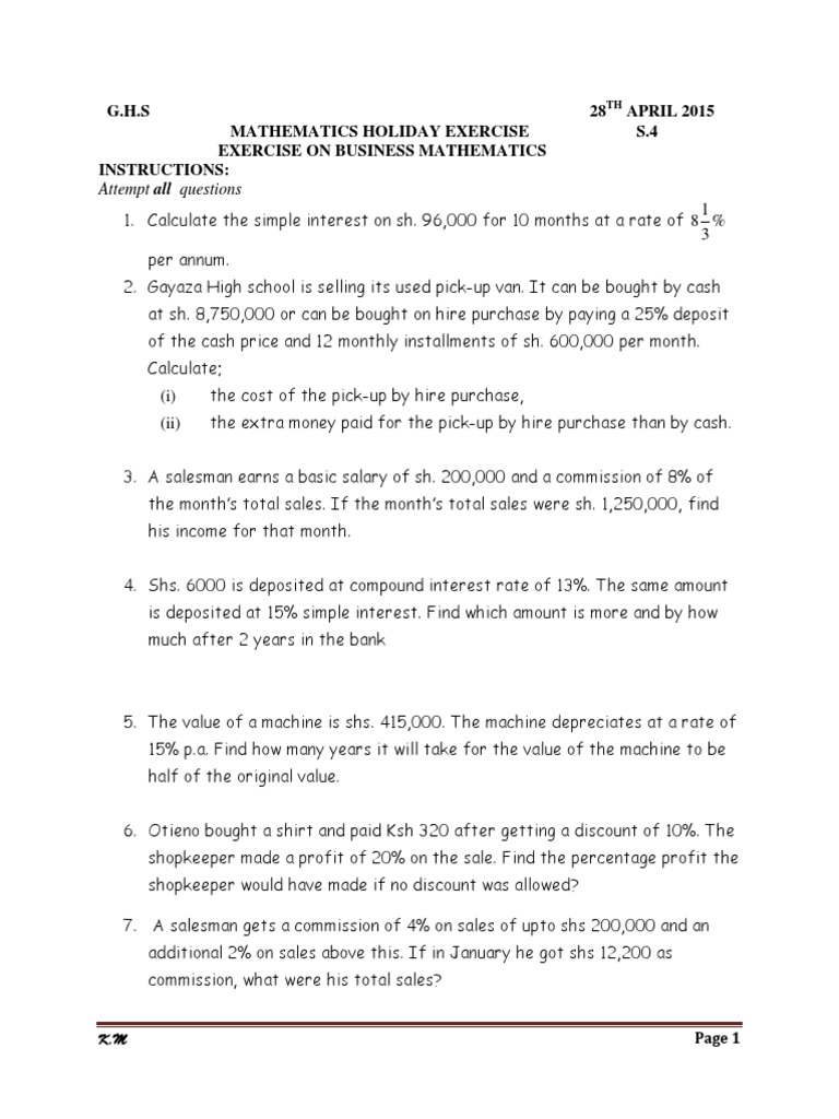 EXERCISE ON BUSINESS MATHEMATICS