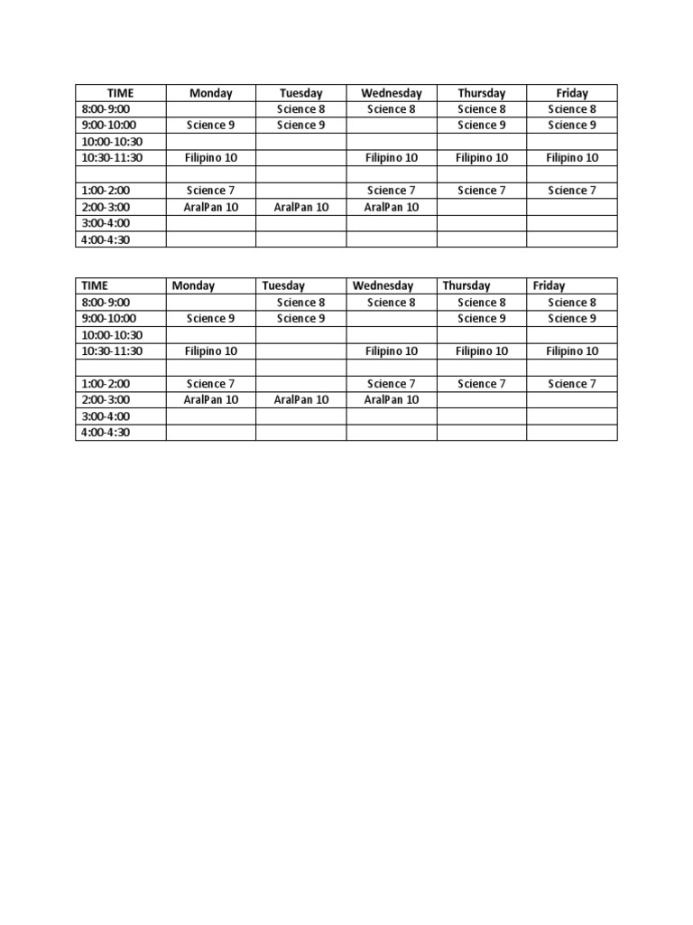 9:00-10:00 Science 9 Science 9 Science 9 Science 9