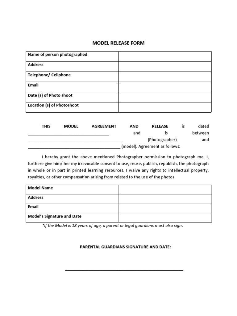 *If the Model is 18 years of age, a parent or legal guardians must also sign.
